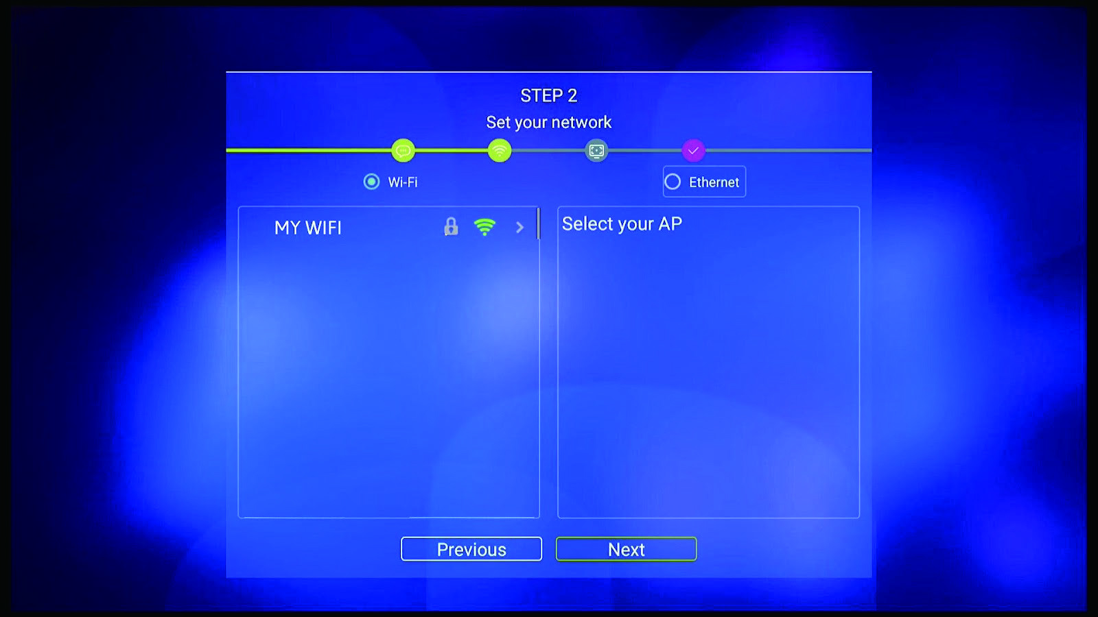 Step 2 -Select your internet connection (Either Ethernet or WiFi)