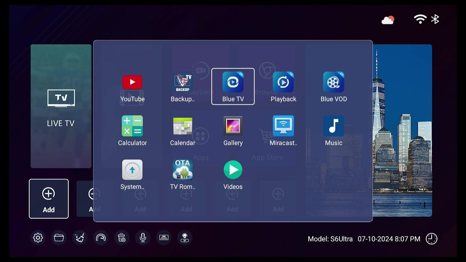 Step 6A- Click LIVE TV/OD/Playback and add corresponding apps